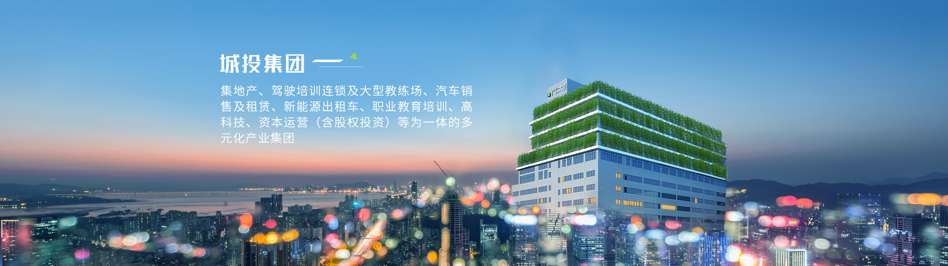 城投集團(tuán)堅(jiān)持“愛黨愛國(guó)、孝敬父母”的核心企業(yè)文化,主要業(yè)務(wù)為高科技、互聯(lián)網(wǎng)、基金投資、地產(chǎn)開發(fā)、職業(yè)教育培訓(xùn)、駕駛培訓(xùn)、汽車銷售及租賃、出租車運(yùn)營(yíng)等。