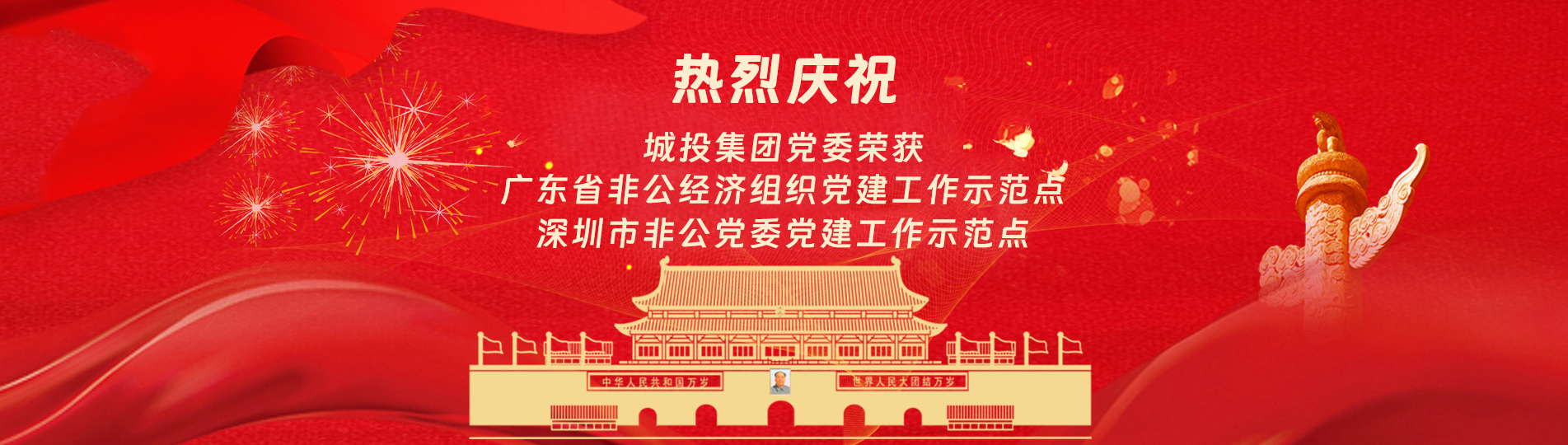 在上級(jí)黨委的正確領(lǐng)導(dǎo)下,在城投集團(tuán)的大力支持下,集團(tuán)黨委緊緊圍繞企業(yè)發(fā)展戰(zhàn)略,將黨建引領(lǐng)核心貫穿始終,以五心工程(即思政建設(shè)核心工程、經(jīng)營(yíng)發(fā)展中心工程、企業(yè)文化向心工程、黨建品牌匠心工程、服務(wù)基層愛心工程)為抓手,大膽探索,勇于突破和創(chuàng)新,不斷形成城投黨建特色,有效輸出城投實(shí)踐經(jīng)驗(yàn),充分發(fā)揮紅色引擎作用,先后獲得深圳市非公黨委黨建工作示范點(diǎn)深圳市兩新組織黨建工作示范點(diǎn)深圳市文明單位深圳市先進(jìn)基層黨組織廣東省非公有制經(jīng)濟(jì)領(lǐng)域黨建工作示范點(diǎn)等榮譽(yù)稱號(hào)。
